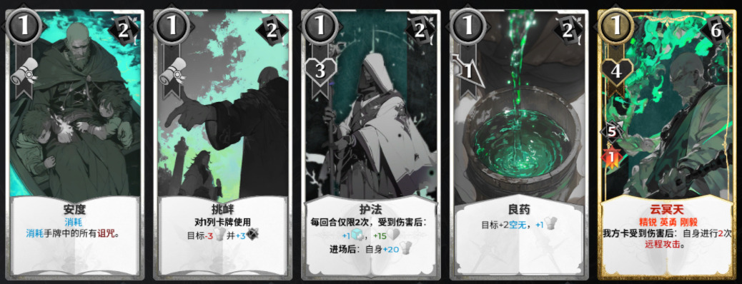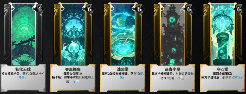 游戏中一共4个流派,本次先进行第三个流派绿色轮回的基础卡讲解。