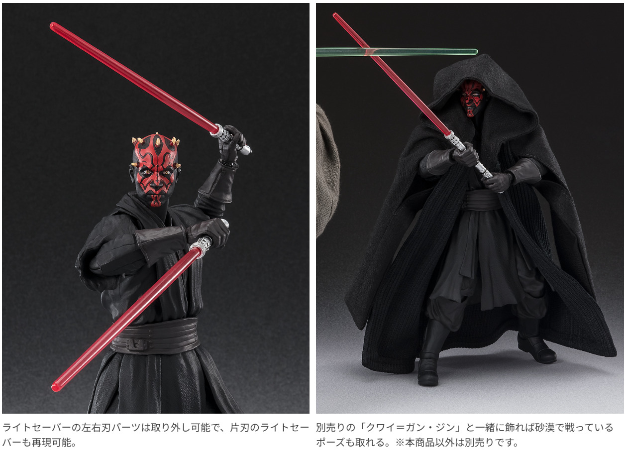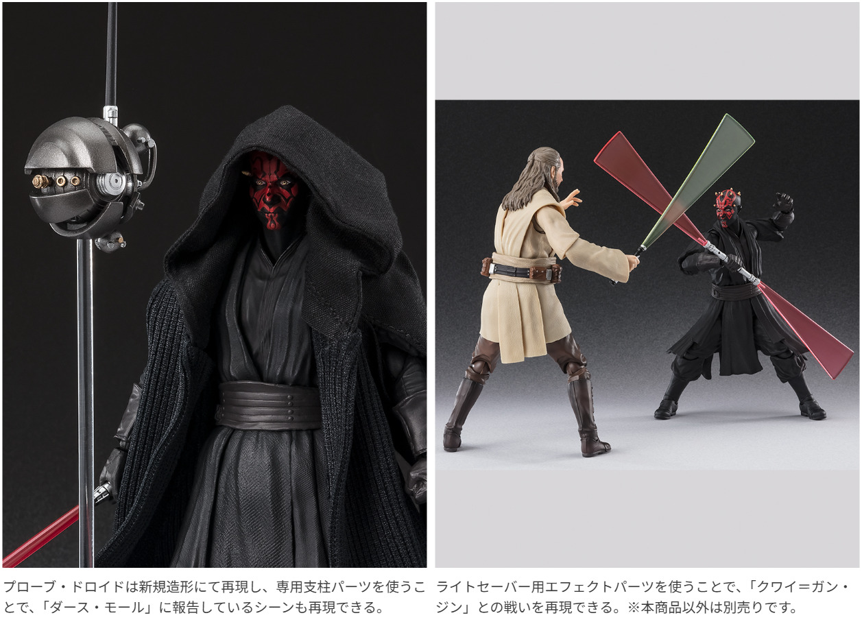 ダブルブレードライトセーバー用の新規エフェクトパーツや「ダース・モール」の専用ドロイドが付属。更に「クワイ=ガン・ジン」と惑星タトゥイーンの砂漠で戦った時に羽織っていたクロークも布製パーツとして装備可能。