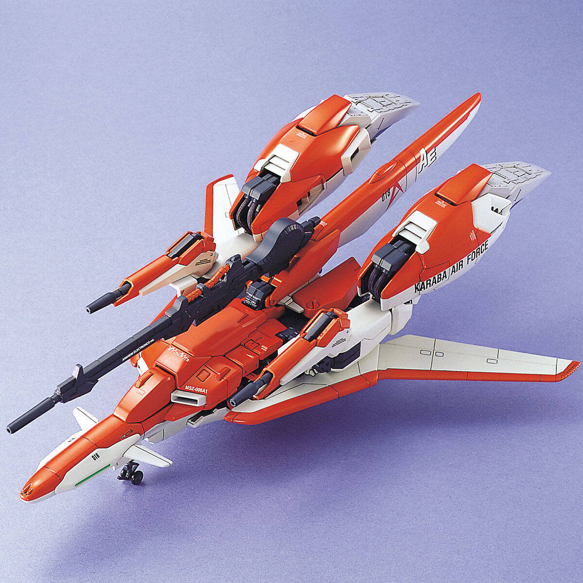 機体カラーはデモンストレーション用に塗装されたテスト機カラーのオレンジと白のツートンカラーで再現。最大の特徴である「ウェイブライダー」への変形も完全再現。各種武器も付属し、充実の内容です。
