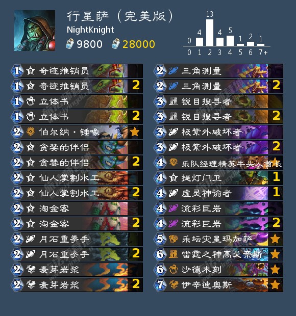 最新改良的狂野行星萨,加入了更多前期过牌进行提速(淘金客,抽牌图腾,仙人掌割水工),以适应快节奏的狂野环境。