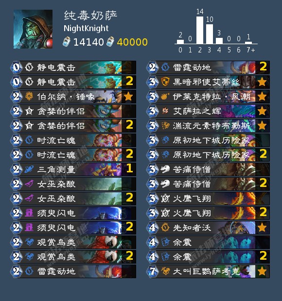 非定向的过牌方面,采用了无类型随从双苦痛侍僧,几乎可以实现贴吧苦痛过4张——这时与打自己随从套路的萨满契合性就体现出来了。