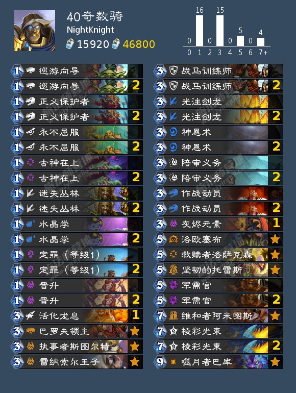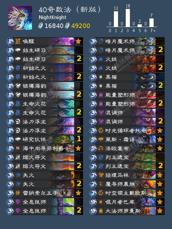 新版发现7费盗版之王托尼(注意效果现在是战吼!)和5费洛欧塞布竟然很适合奇数法的节奏,换掉了之前一直看不顺眼的7费元素激励,有兴趣者可以尝试。