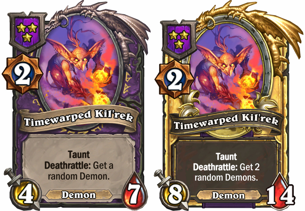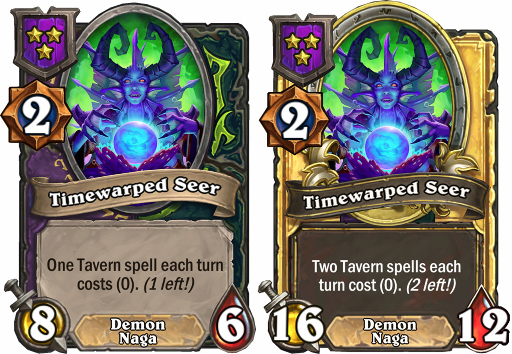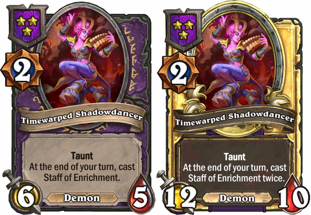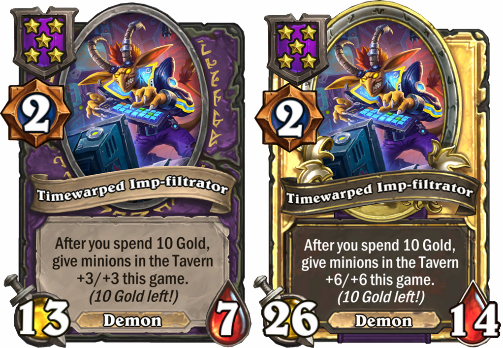 - [2费13/7恶魔] 在你花掉10枚铸币后,使酒馆中的随从在本局对战中获得+3/+3。(还剩10枚!)