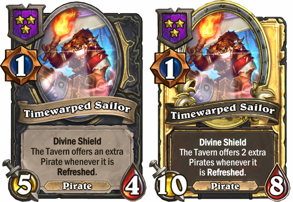 - [1费5/4海盗] 圣盾。每当酒馆刷新时,总会额外提供一个海盗。
