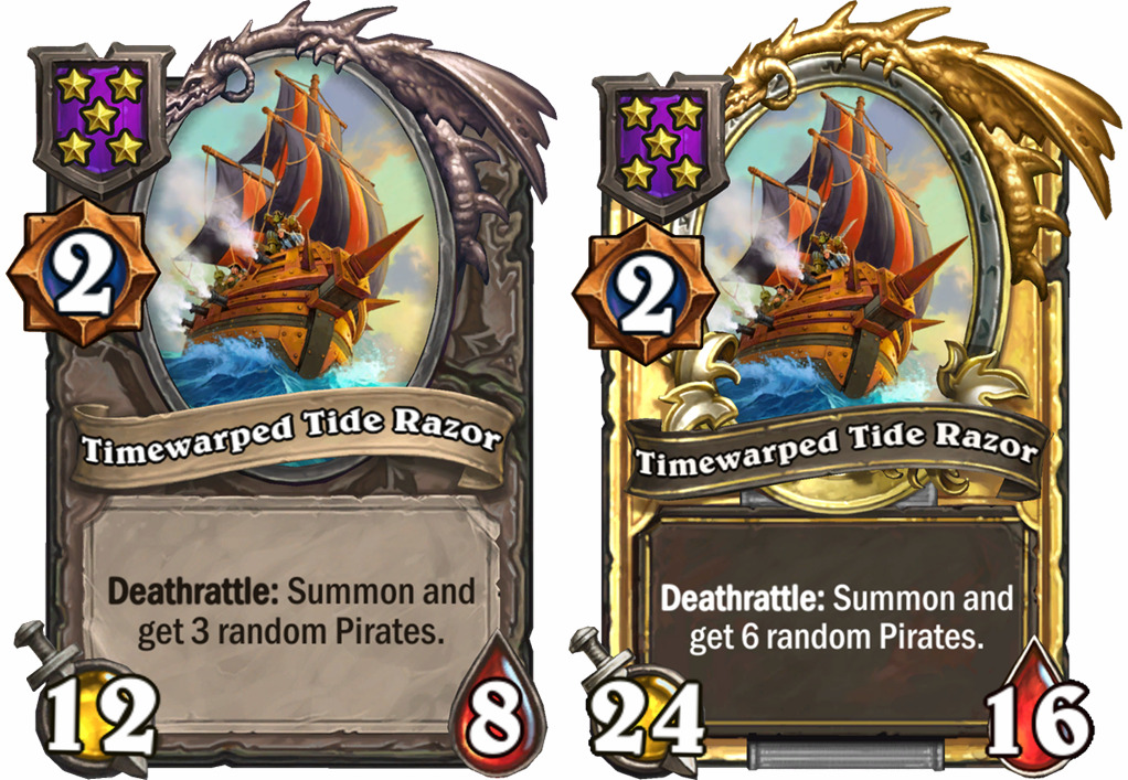 - [2费12/8] 亡语:召唤并获取3个随机海盗。