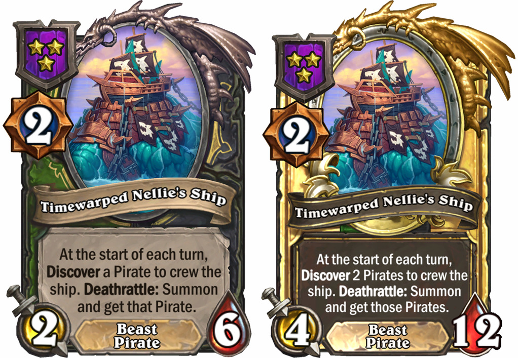 - [2费2/6野兽+海盗] 在每个回合开始时,为这艘船发现一位海盗船员。亡语:召唤并获取船上的海盗。