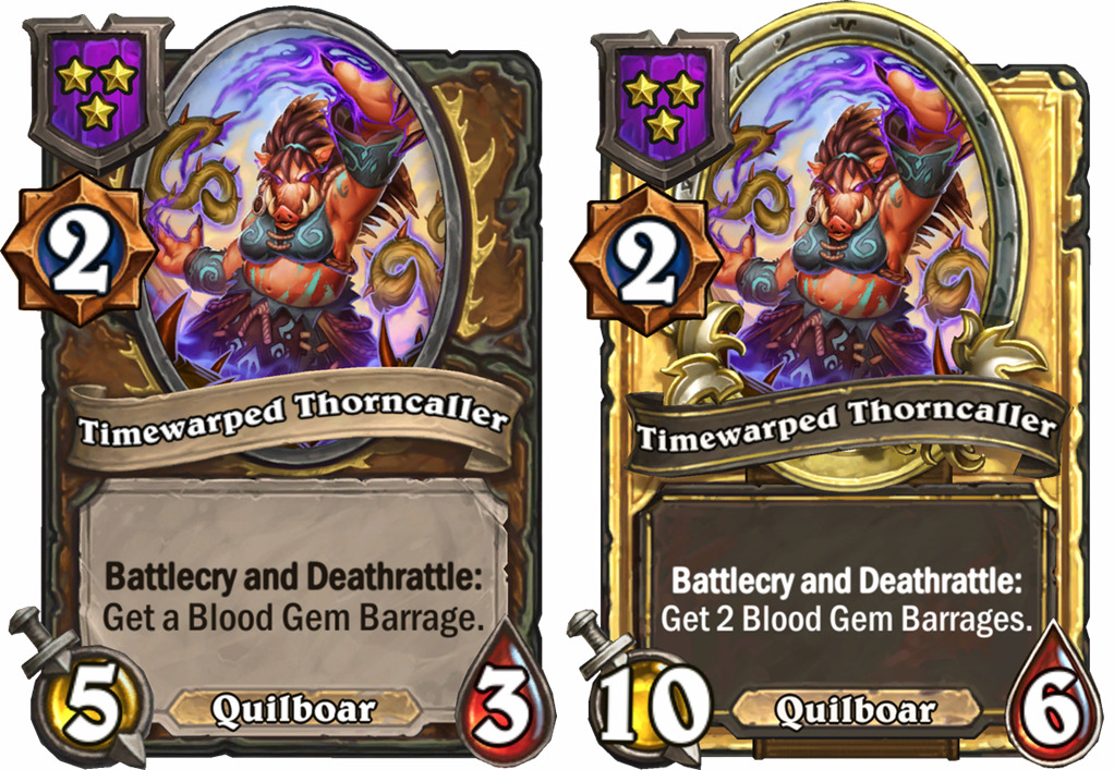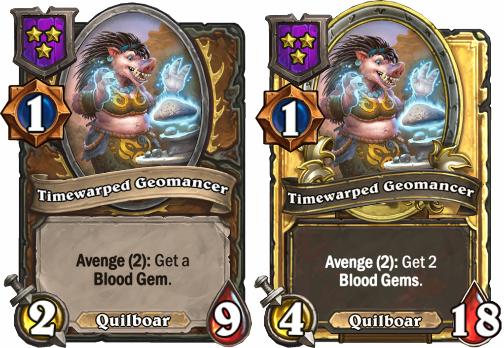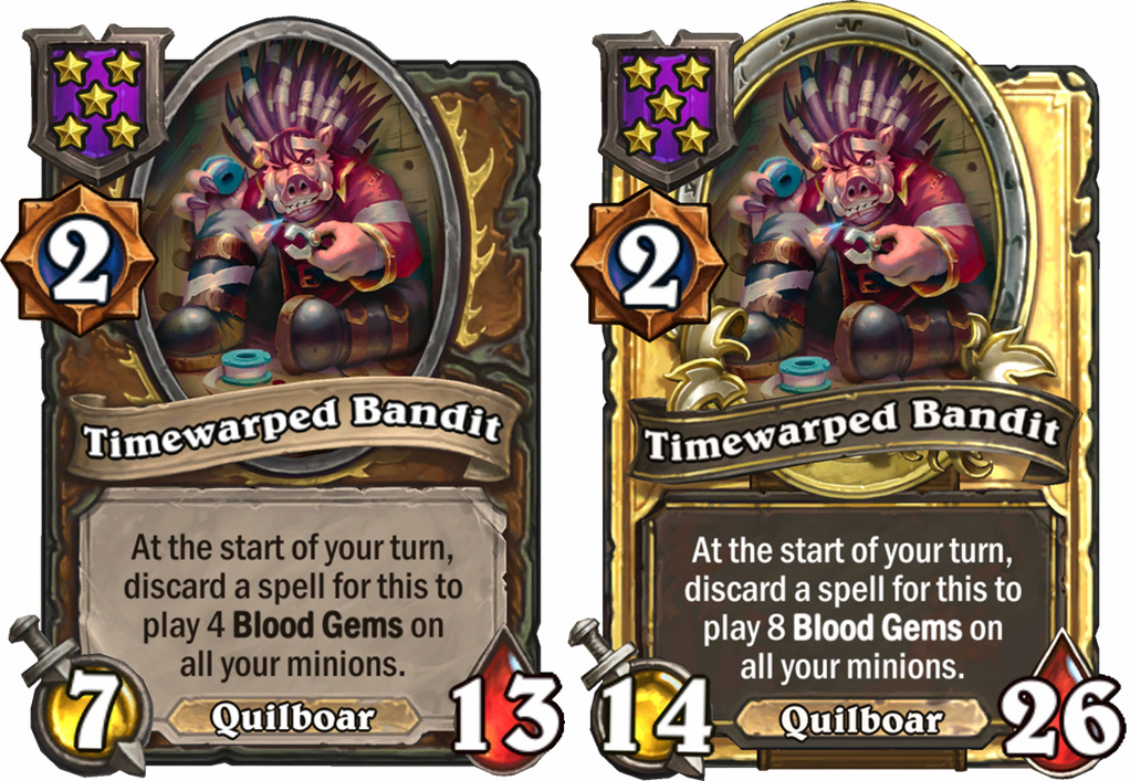 - [2费12/8野猪人] 在你的回合开始时,获取5张视为酒馆法术的鲜血宝石。