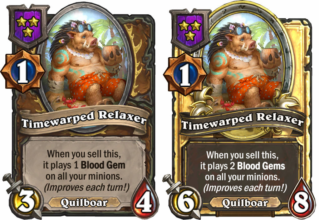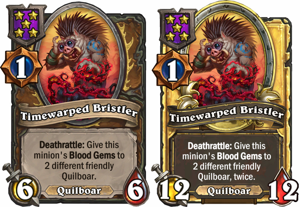 - [1费3/4野猪人] 当你出售本随从时,本随从对你的所有随从各使用1张鲜血宝石。(每回合都会提升!)