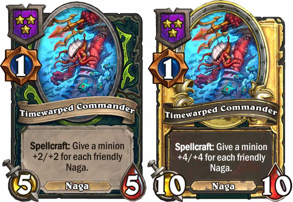 - [1费5/5纳迦] 塑造法术:每有一个友方纳迦,使一个随从获得+2/+2。