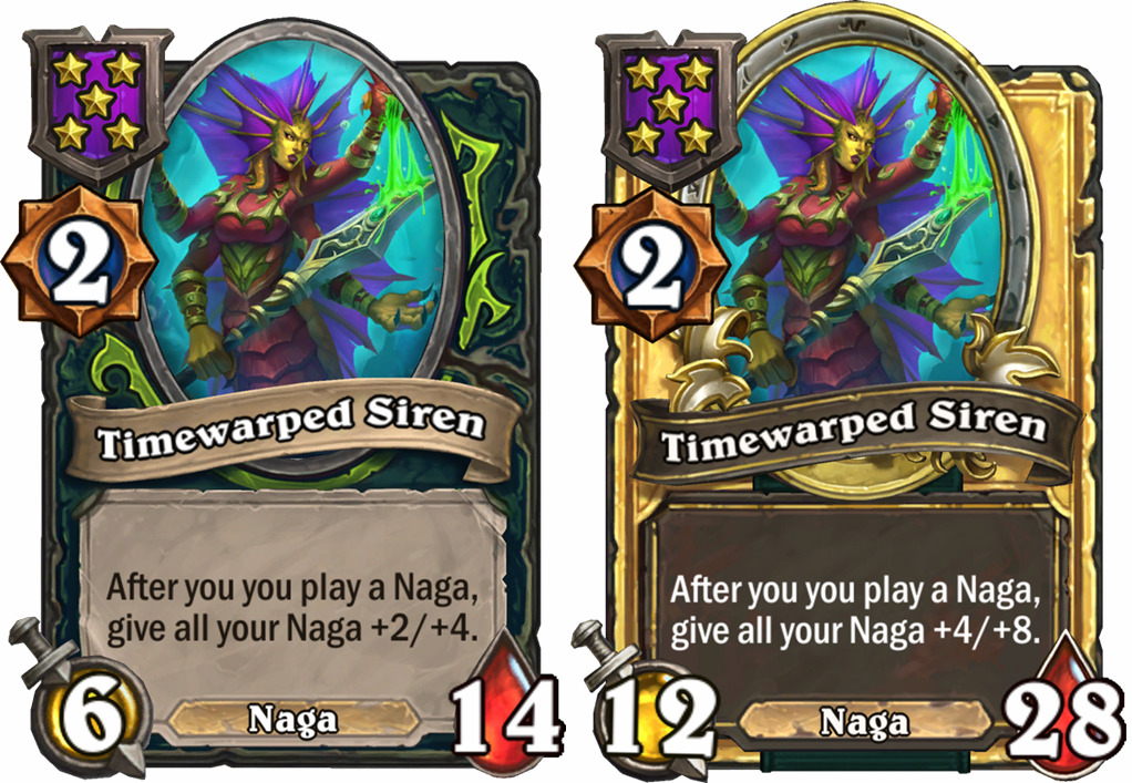 - [2费6/14纳迦] 在你使用一张纳迦牌后,使你的所有纳迦获得+2/+4。