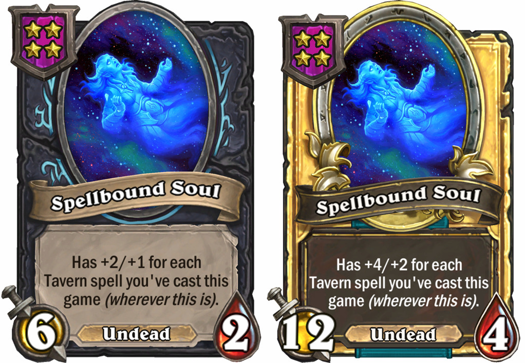 - [4星6/2亡灵] 在本局对战中,你每施放一个酒馆法术,便拥有+2/+1(无论本随从在哪)。
