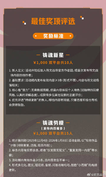 2025年12月4日-2026年1月8日,加入符文战场创作者激励计划,用你的才华点燃战场的每一处角落!