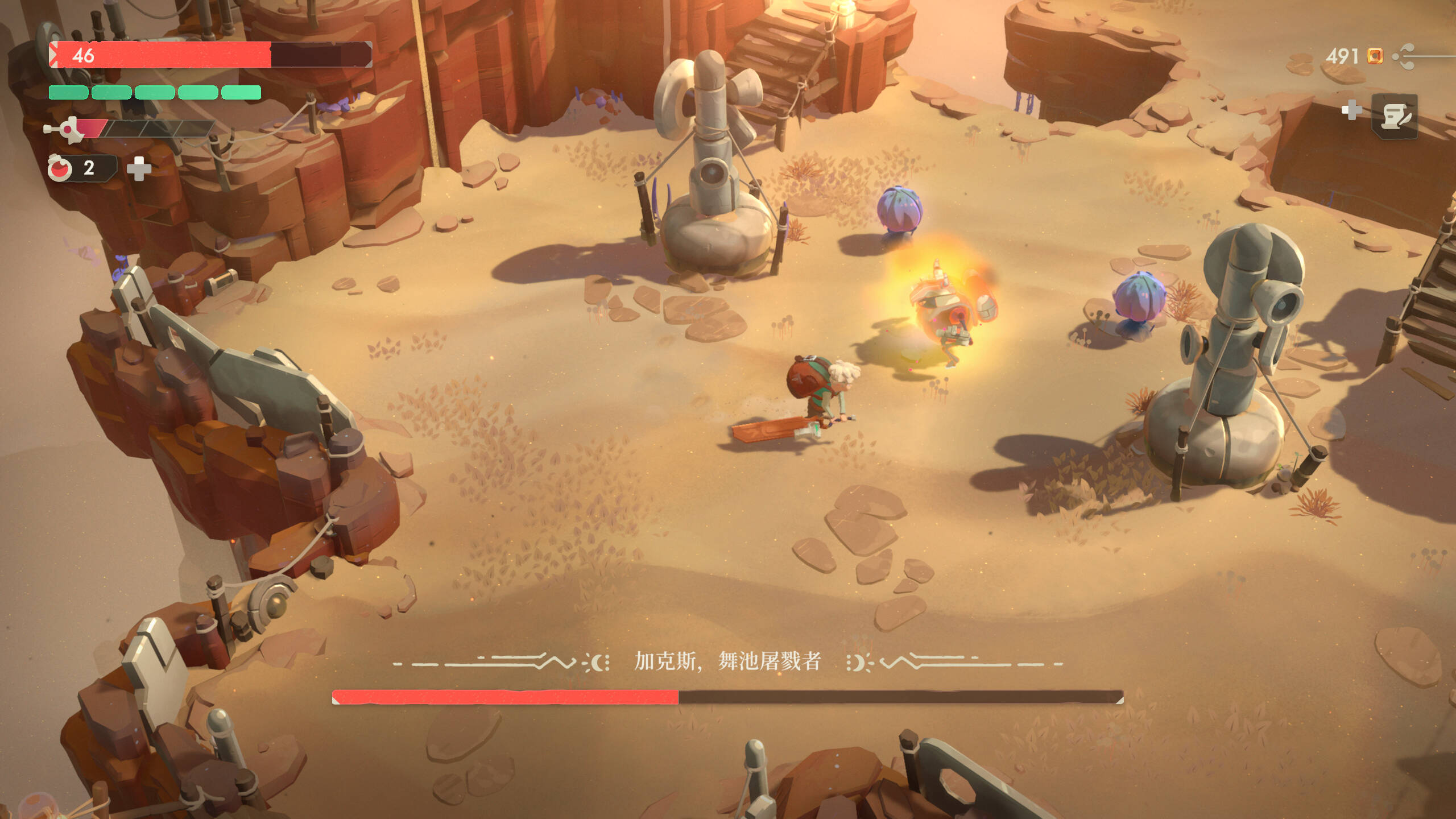 游戏的战斗部分可谓是**中的**。游戏以哈迪斯式的战斗模板加之类似杀戮尖塔的路线选择以及搜打撤的遗物部分还有肉鸽式的bd构建组成战斗部分的几乎全部内容。首先游戏难度有三种,可以在游戏内随时更改。即使你是战斗苦手,也可以选择简单模式来进行游戏的体验与游玩。下地牢的类爬塔式的房间连接、路线选择、可视化的房间奖励,可以说十分直观与易上手。宝箱房中获取遗物、buff房中获取肉鸽一般的能力加成、奇遇房亦即事件房可以接取事件完成后获得加成、篝火房即恢复生命值、还有配方房可以获取配方来打造新武器或者家具等、此外还有铁匠房可以给自己的武器附上buff。树杈式的房间链接也给我们带来了多样化的选择,可以选择赚取金钱的遗物房路线也可以选择战斗爽路线走buff加成房间也或是为了全收集而尽量走配方房,其次也可以相互混搭既要又要,一切都随你选择。关于战斗方面,游戏有四类武器,分别是大剑、短剑、长矛、拳套。每种武器都有相对应的攻击模板与特色。比如大剑有专属的锋利值,用久了需用特殊攻击磨刀或者是短剑普通攻击衔接特殊攻击会有特殊技能。其余两种武器也各有特色。而除去近战部分还有背包攻击以及远程攻击。背包攻击主要应用于怪物进入破裂状态后可以将其击飞而远程攻击的伤害较高且可以通过buff房点出特效获得更强的效果,子弹用完后可以通过近战攻击来补充手***可以说二者相辅相成了。此外面对滞空怪物时可以通过射击打下来,可以说是相当不错的设定。不过游戏的打击感属实一般,虽然较前代而言有所提升,但还是有点软的味道。