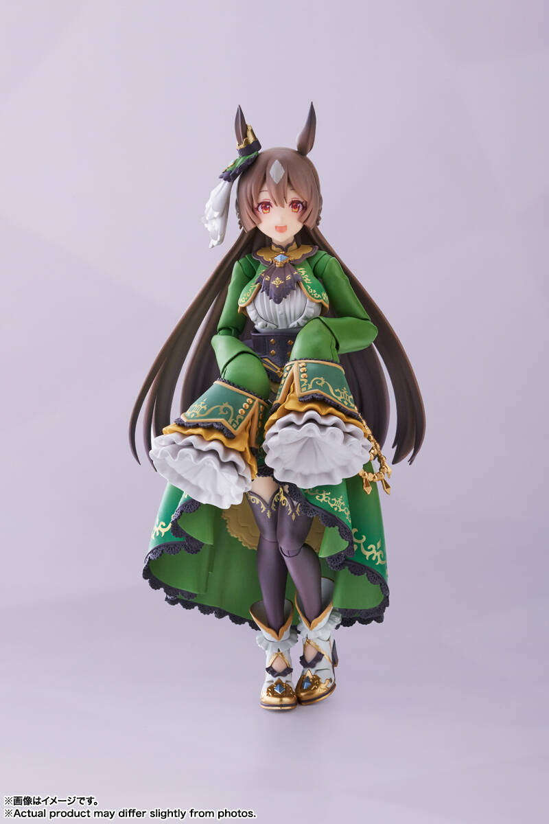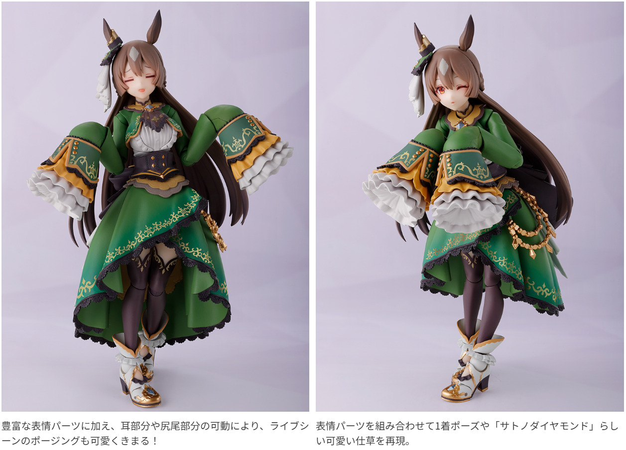 S.H.Figuartsシリーズの可動に加え、豊富な表情パーツを付属し、レースシーンやライブシーンの再現が可能!「サトノダイヤモンド」の特徴的な勝負服も細部までこだわって造形している。