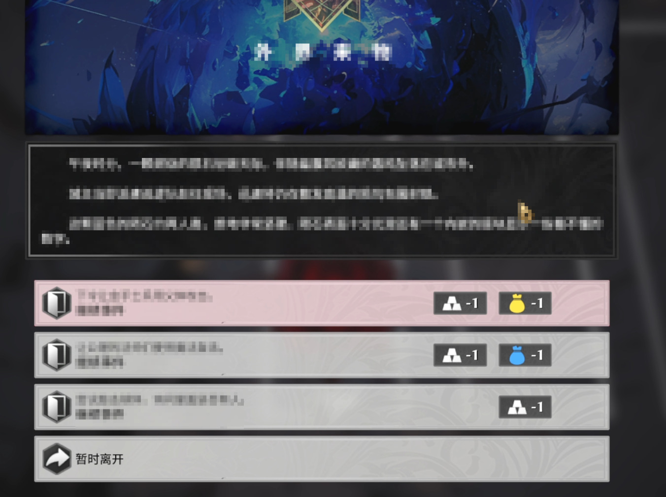 在处理游戏中的事件时,玩家的选择将直接影响事件的最终结果。部分选项需要玩家拥有对应的特定道具才能解锁,而另一些选项则考验运气,通过投掷六面骰子来决定事件的成功程度。与派系设定类似,道具也划分为四大派系,每个派系的道具皆能以不同方式影响事件检定的结果。