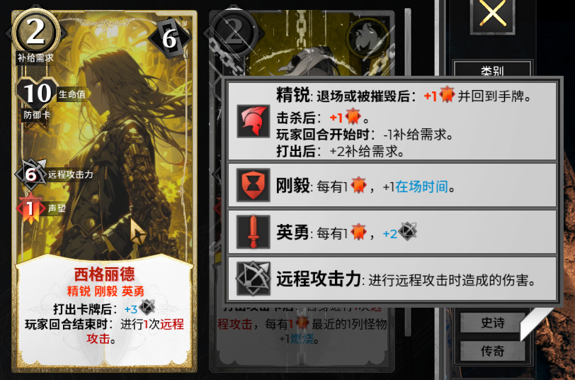 此外,游戏引入了一种名为“精锐”的特殊单位。这类单位即使退场或被消灭,也不会进入弃牌堆,而是直接返回手牌。每张精锐牌都拥有独立的“声望”计数器,通过消灭敌人、退场或被摧毁均可积累声望。随着声望的上升,这张精锐牌的能力也会随之增强。不过,精锐单位每次被打出时费用会逐渐上升,而在手牌中每回合会减少一点费用。由于其独特的持续作战与成长机制,精锐牌通常可作为卡组构建的核心。