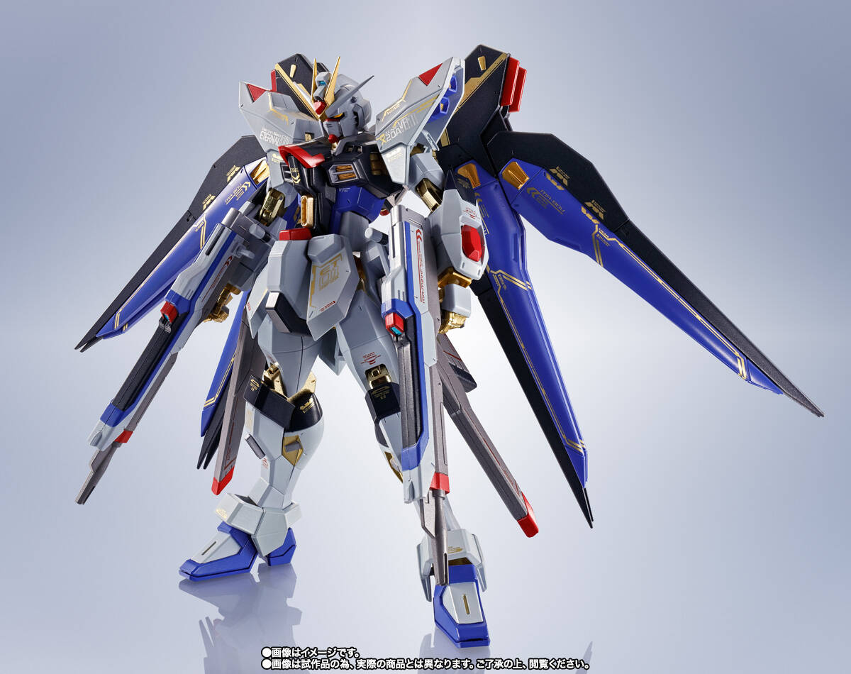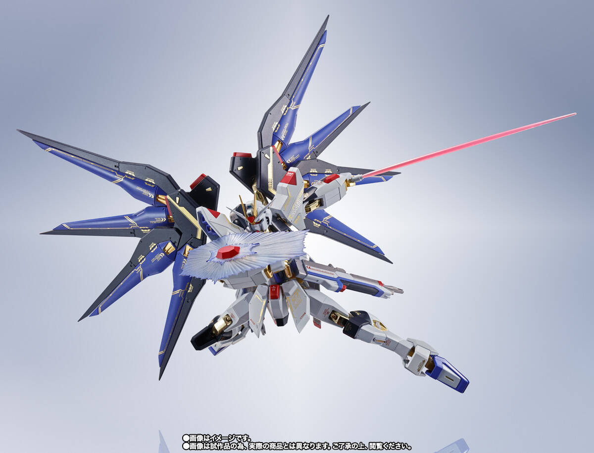 同時受注の「METAL ROBOT魂 <SIDE MS> プラウドディフェンダー&エフェクトパーツセット」(別売り)と組み合わせる事により、「マイティーストライクフリーダムガンダム」を再現可能。