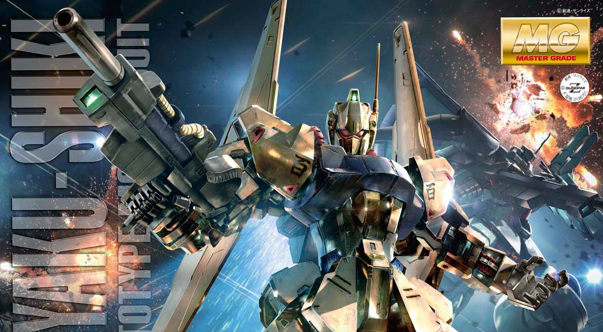 劇場版「機動戦士Zガンダム-星を継ぐ者-」でも登場したバリュートシステム装備の百式の1/100MGシリーズプラモデルです。バリュートシステムは胸部、脚部、背部をそれぞれ装着可能で、内部のパラシュートは収納状態で再現しました。バリュートシステムサイドのパイプには軟質材料を採用し、質感をリアルに再現。