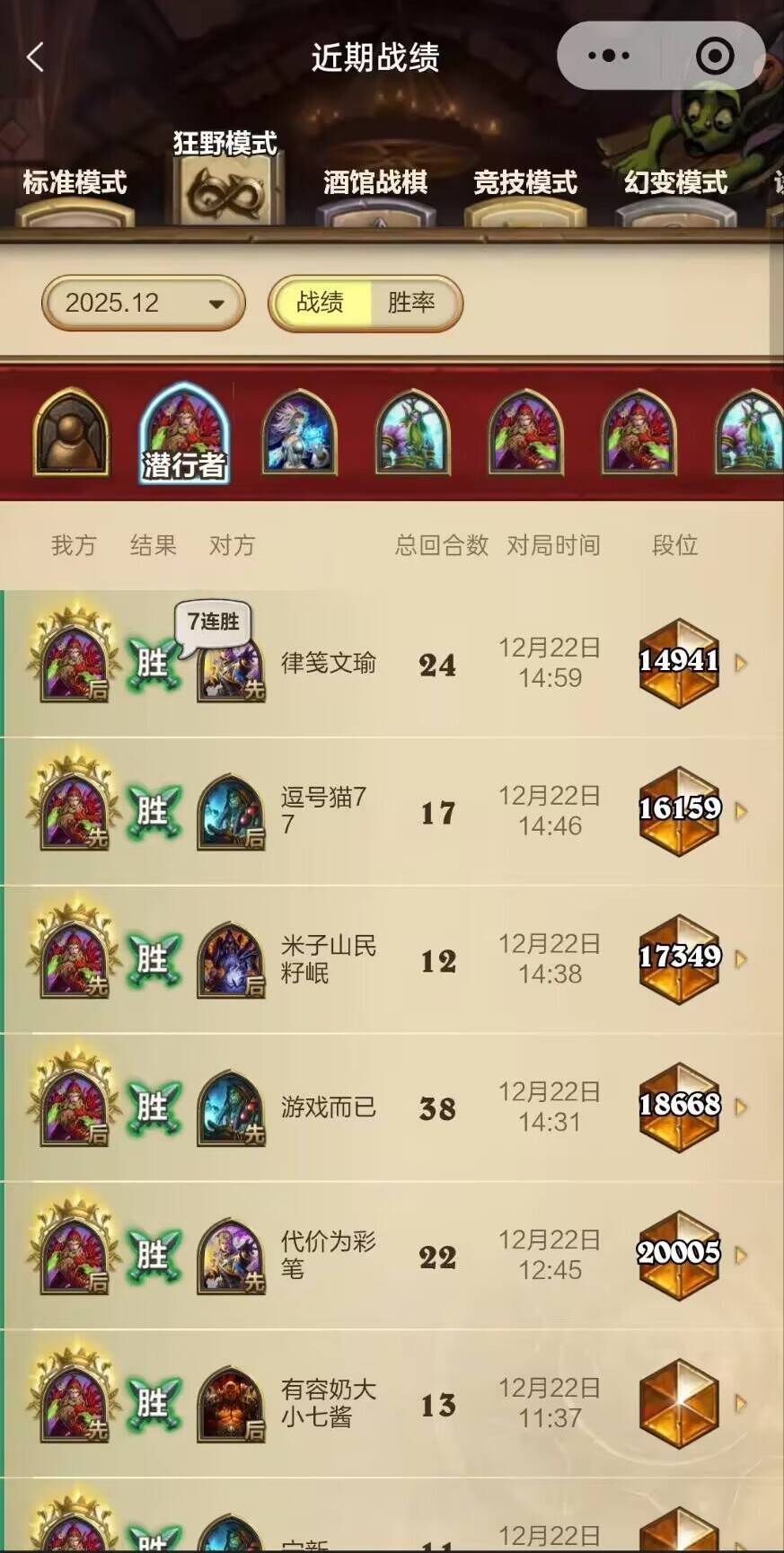 先贴一下战绩,传说游龙,7连胜,只要熟练还是有强度的。