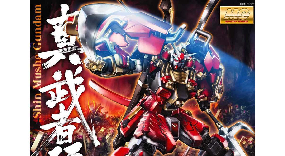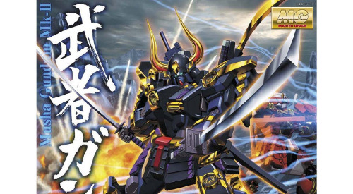 5月人形を彷彿とする煌びやかなMG真武者頑駄無が登場 各部に施されたゴールドメッキとグロス成形により日本伝統の蒔絵を思わせる仕上がりを実現 刀、火砲、槍、薙刀を装備 絢爛豪華な飾り台には、各武器専用のスタンドと屏風、専用プレートが付属