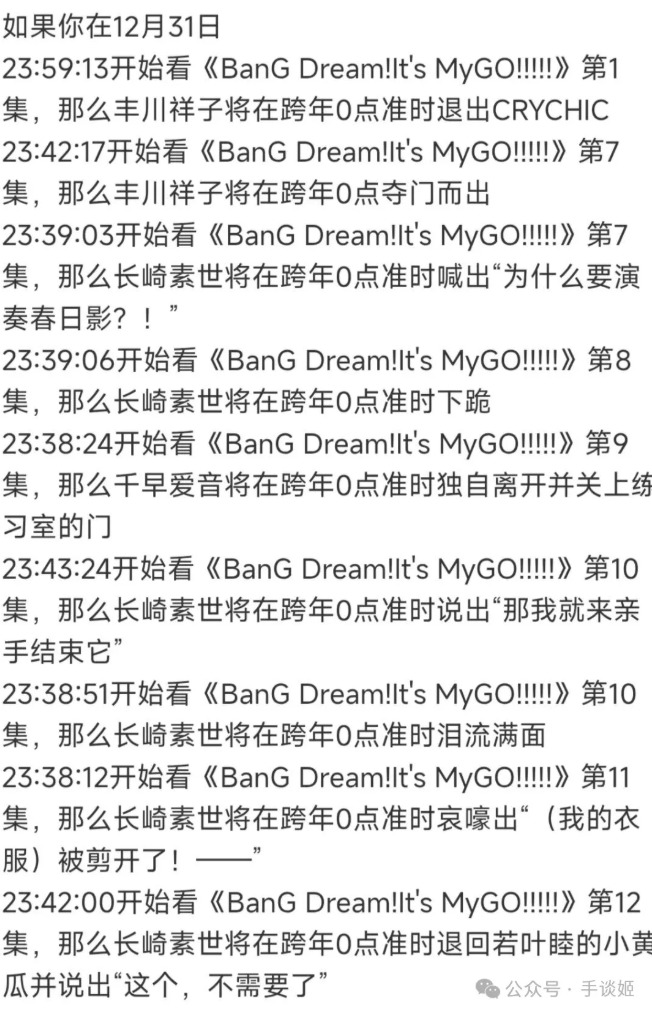 可能会有姬友想了,不就是看动画跨年吗,这怎么了?然而,这看的并不只是动画,而是专门挑那些让人不舒服或者感到悲伤的情节看,还要专门卡点对轴,这样就能在跨年同时刚好看到名场面。
