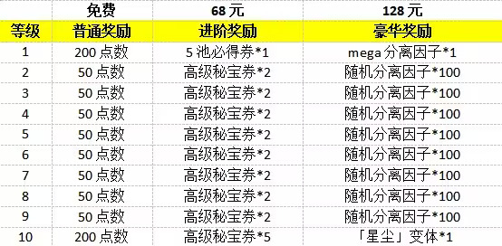 【星尘徽章】可以兑换【高级星空币】、名称栏、高级神秘变体、神秘变体、Mega分离因子和边框等奖励。
