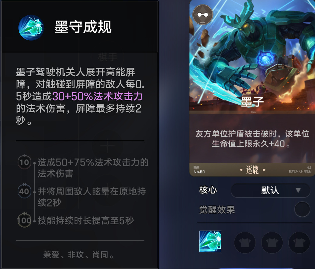 - 墨子:护盾被击破时加血量,廉颇生命值成长的关键。