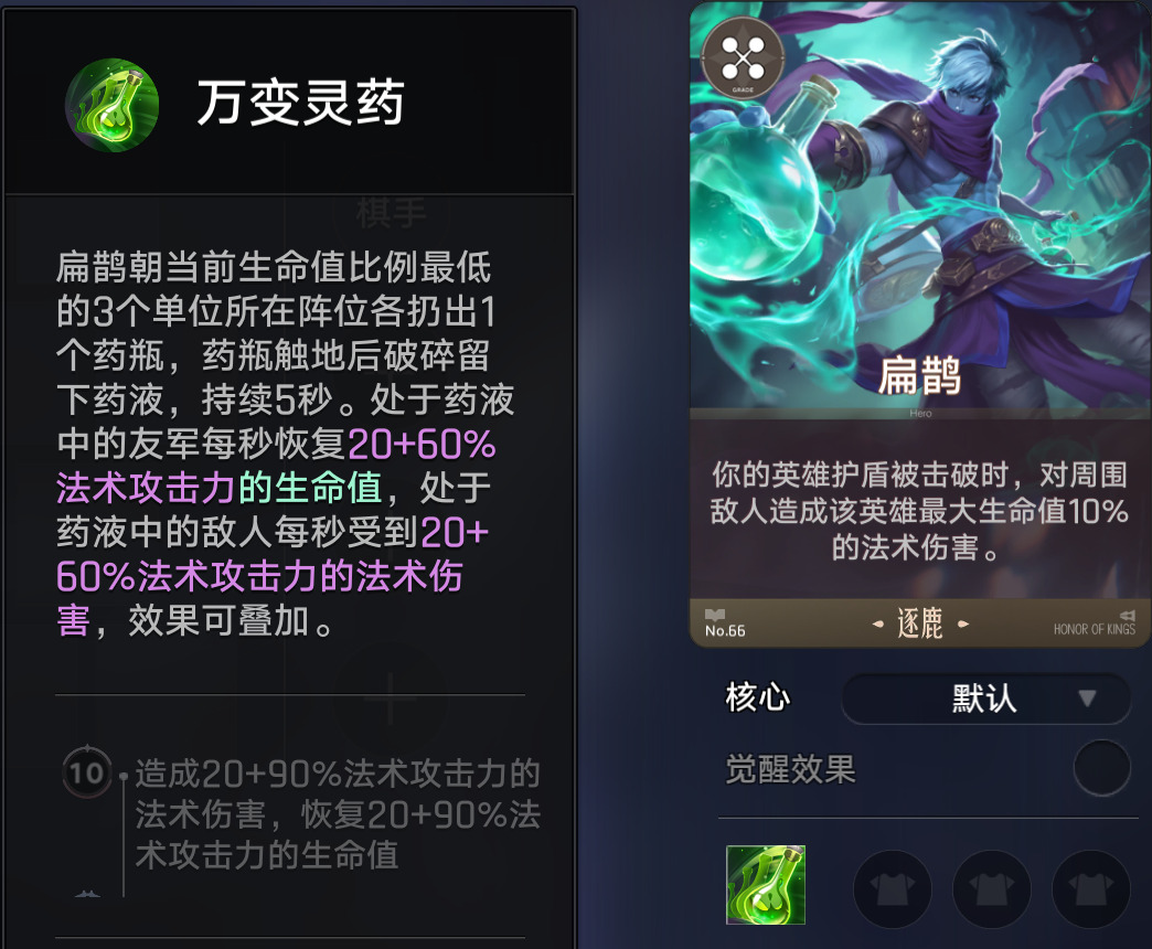 - 扁鹊:炸盾输出的关键牌,廉颇的护盾被击破后触发扁鹊的效果对周围敌人造成最大生命值10%的伤害,所以廉颇的生命值越高,炸盾造成的伤害就越大。生命值的提高依靠上文的墨子。