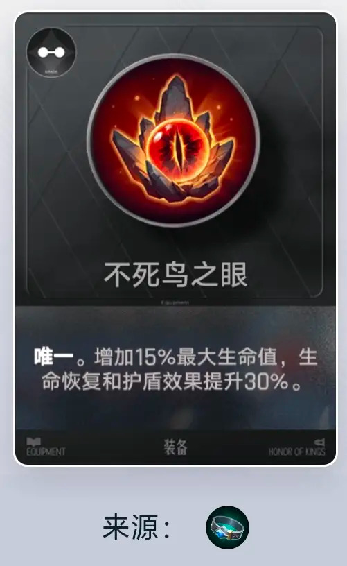- 不死鸟之眼:增加最大生命值,提升恢复和护盾效果,给廉颇增加坦度。
