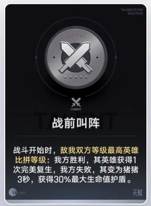 - 战前叫阵:炸盾廉颇是单养核心的流派,在面对对手的多核流派时大概率等级比对面高,多一次完美复生什么含金量就不用多说了吧。就算是等级不够也能获得30%最大生命值得护盾,非常契合我们的流派。