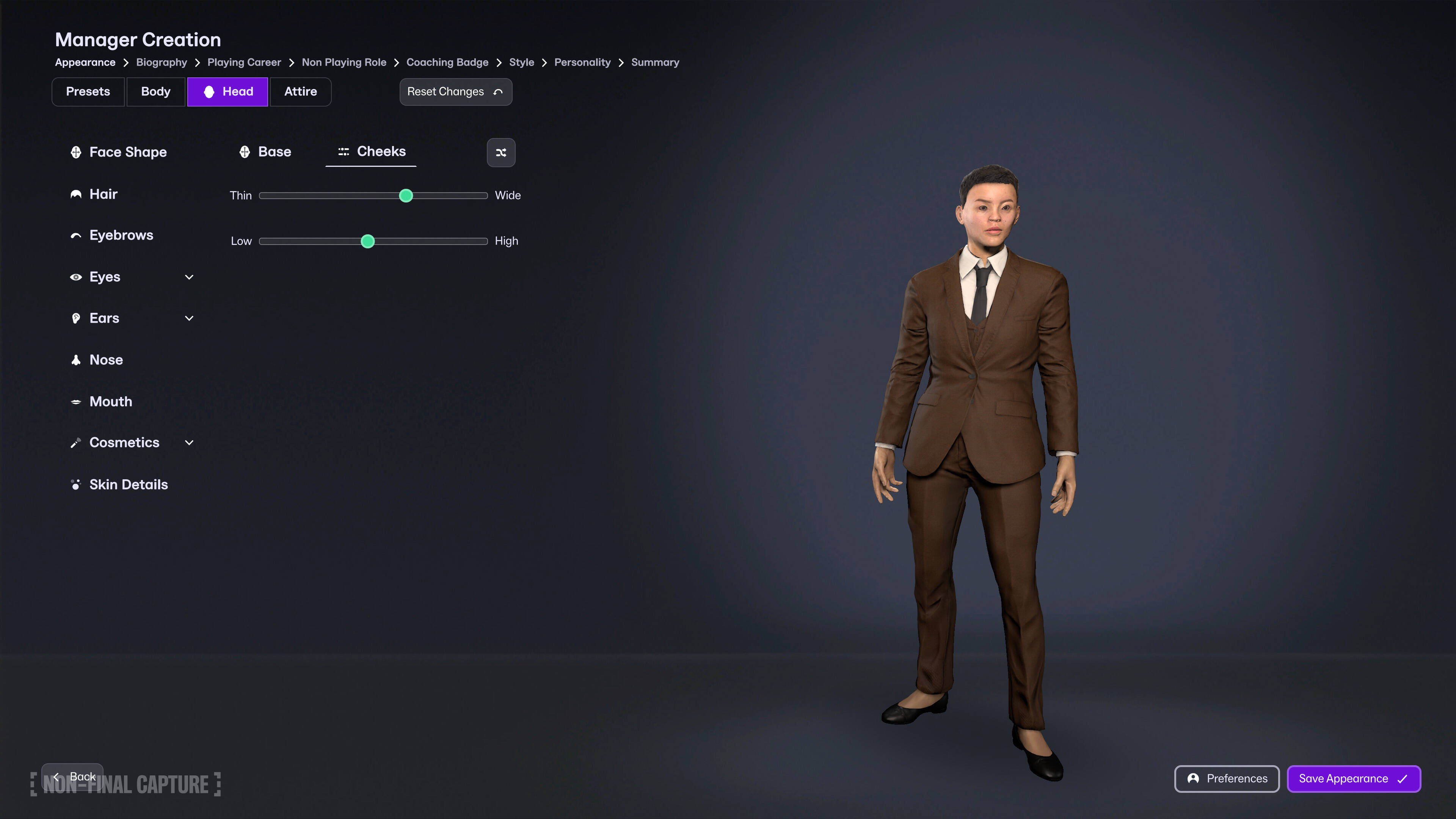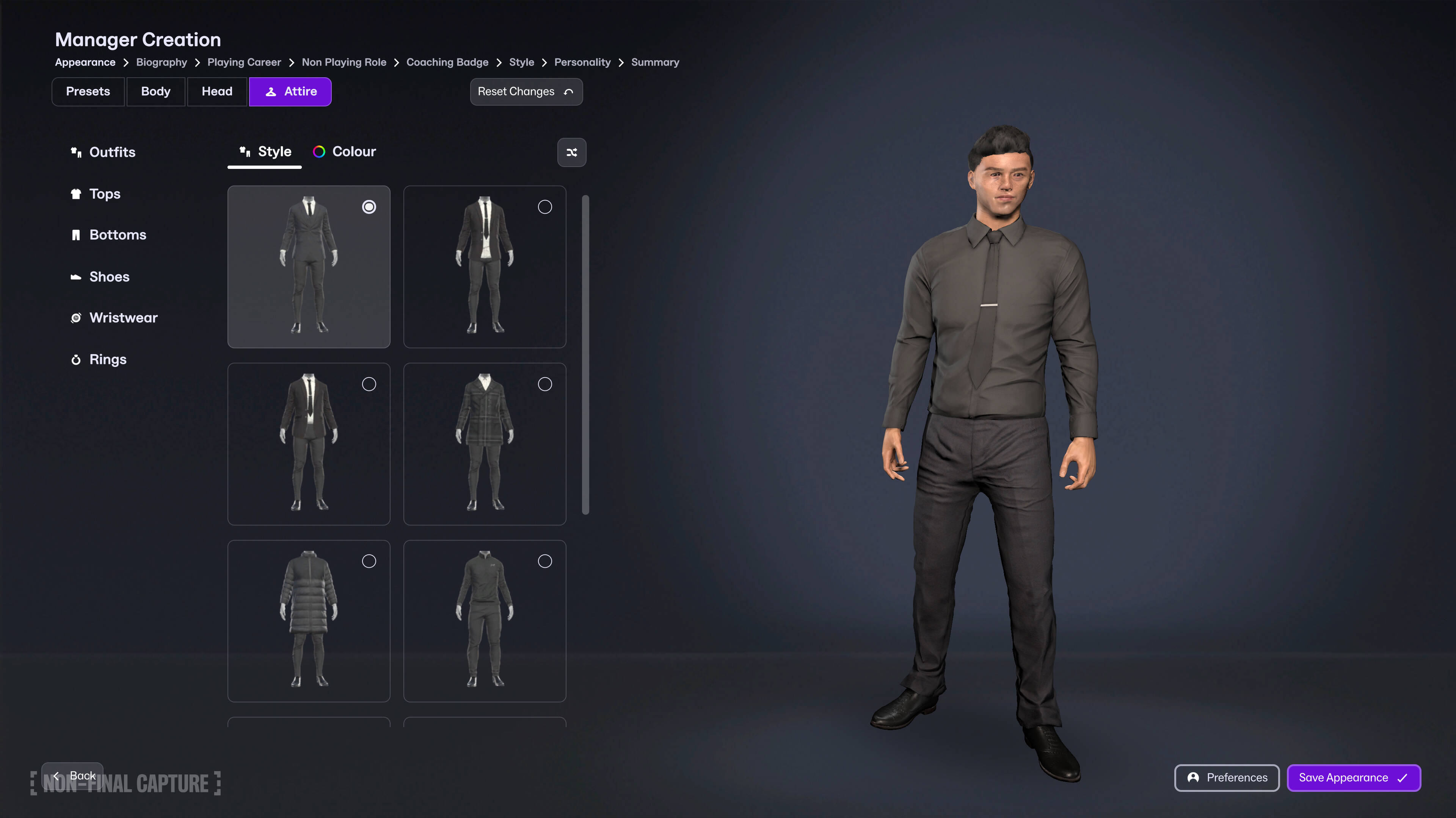 玩家还可选择经理人的领导风格与性格。这些特质会在游戏中反映为经理人的理念与执教方针,并会在职业生涯中动态变化。某些“倾向”还会随着经验积累而形成或失去,玩家在长期游玩中可感受到经理人的成长与变化。