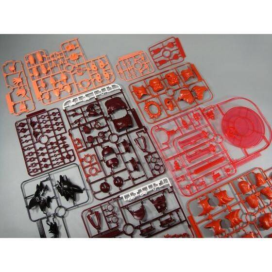 ・宙に浮いた状態でポージングできる クリアレッドのディスプレイスタンド付属。