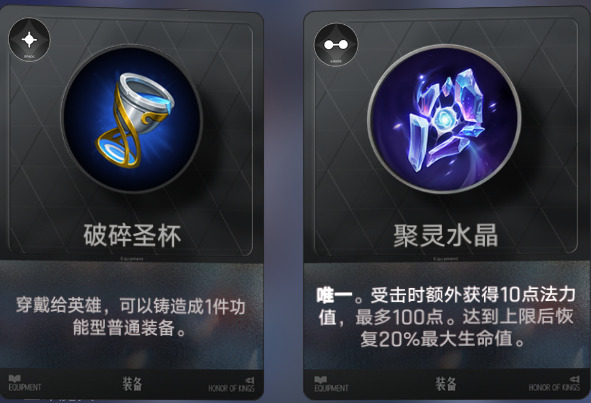 除了法源之杯,聚灵水晶也是一件不错的装备,受击时能加快回蓝。