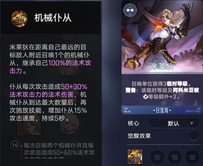 米莱狄是召唤流派的必备核心,能够提升召唤单位的临时等级,自己本身也会召唤机械仆从,100级可以召唤4个机械仆从。