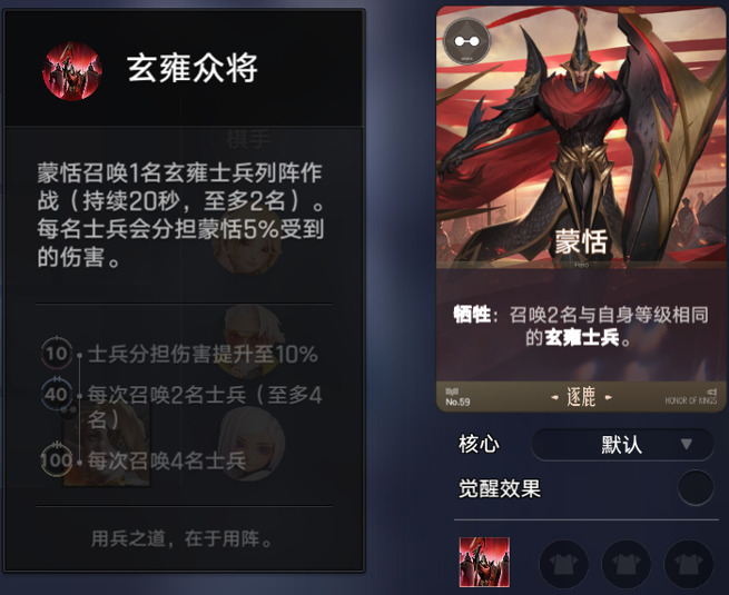 既然蒙恬是核心,那么可以帮助蒙恬快速提升等级的芈月就非常重要了,重要的核心牌之一,能够通过使用效果牌,给蒙恬增加等级,有了芈月之后,商店可以购买能够产出效果牌的英雄,比如白起,老夫子等,这里需要注意,蒙恬的装备数量一定要领先其他逐鹿英雄。