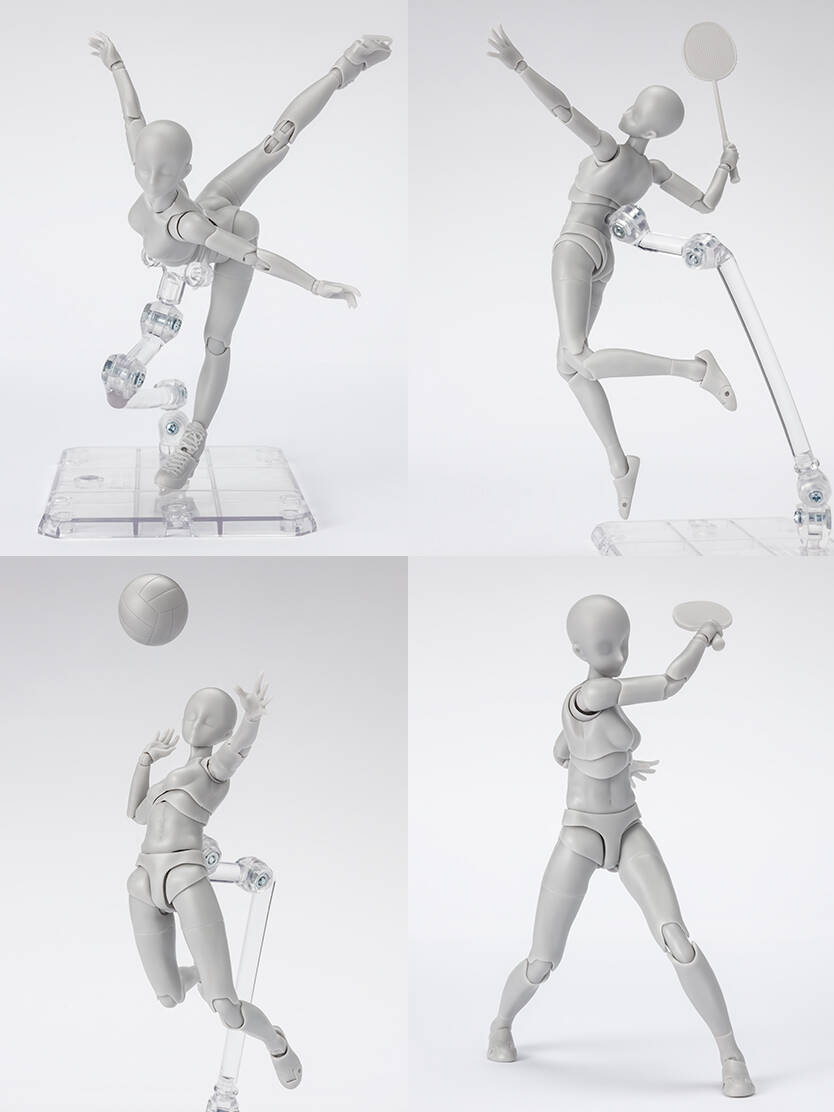 みんなのお絵描きを強力サポート! デッサン用可動フィギュアのボディくん・ボディちゃんシリーズに、スポーツをテーマにした新素体が登場!ボールやラケットなどの小物パーツが多数付属。本体の体型もスポーツマンらしい引き締まった体型に変化しているとともに、可動域も大幅にアップ!