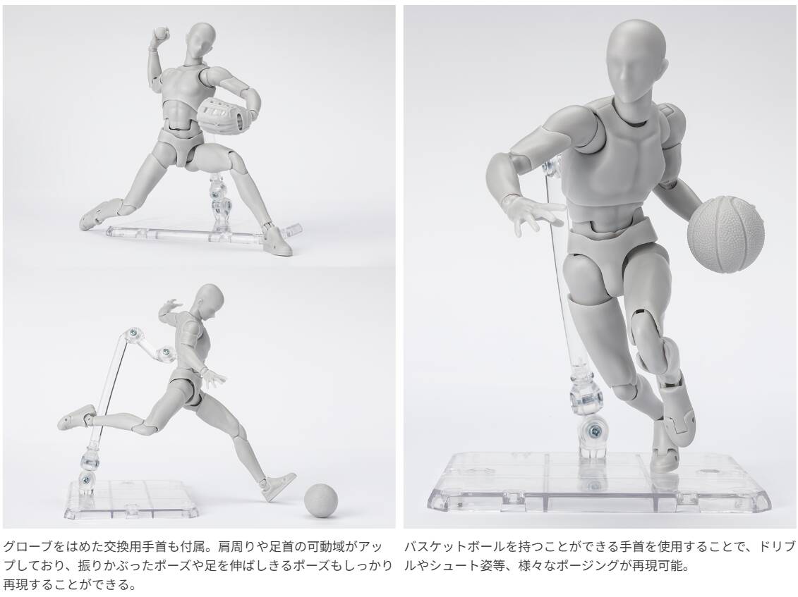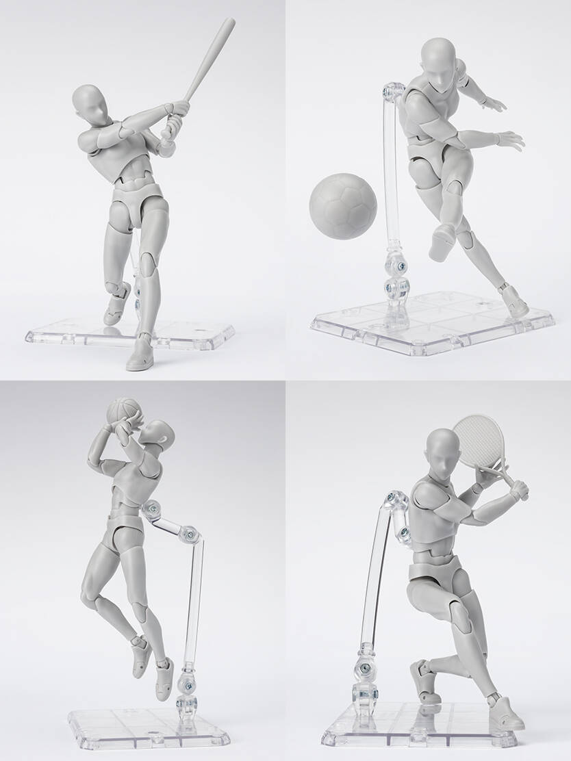 みんなのお絵描きを強力サポート!デッサン用可動フィギュアのボディくん・ボディちゃんシリーズに、スポーツをテーマにした新素体が登場!ボールやラケットなどの小物パーツが多数付属。本体の体型もスポーツマンらしい引き締まった体型に変化しているとともに、可動域も大幅にアップ!
