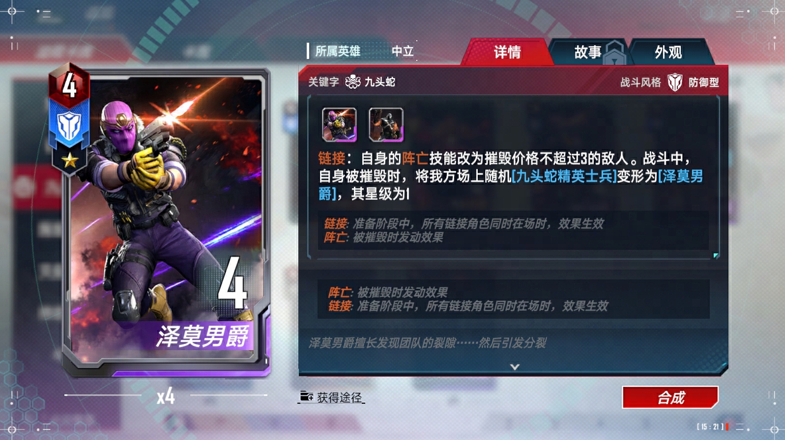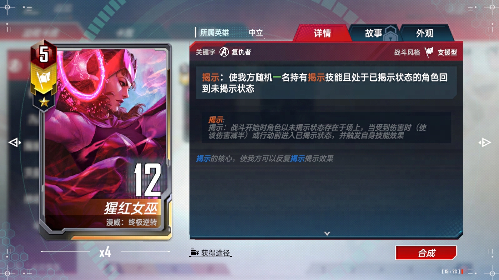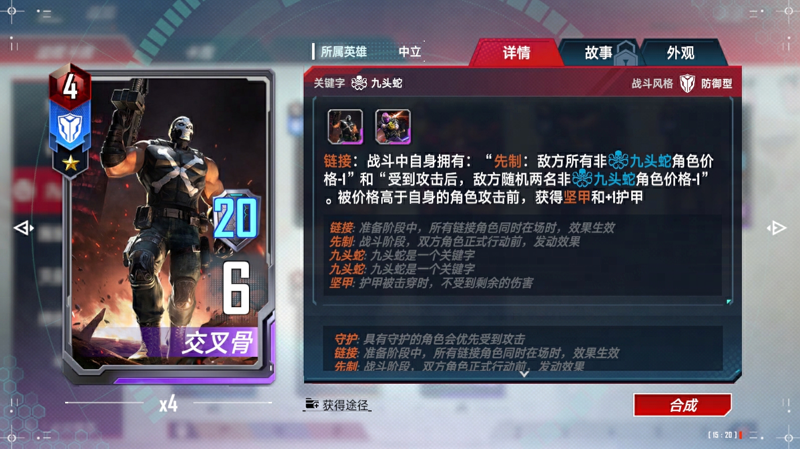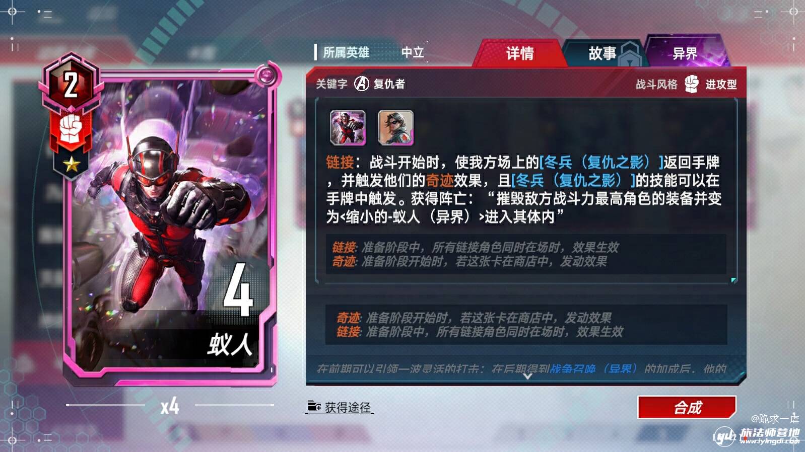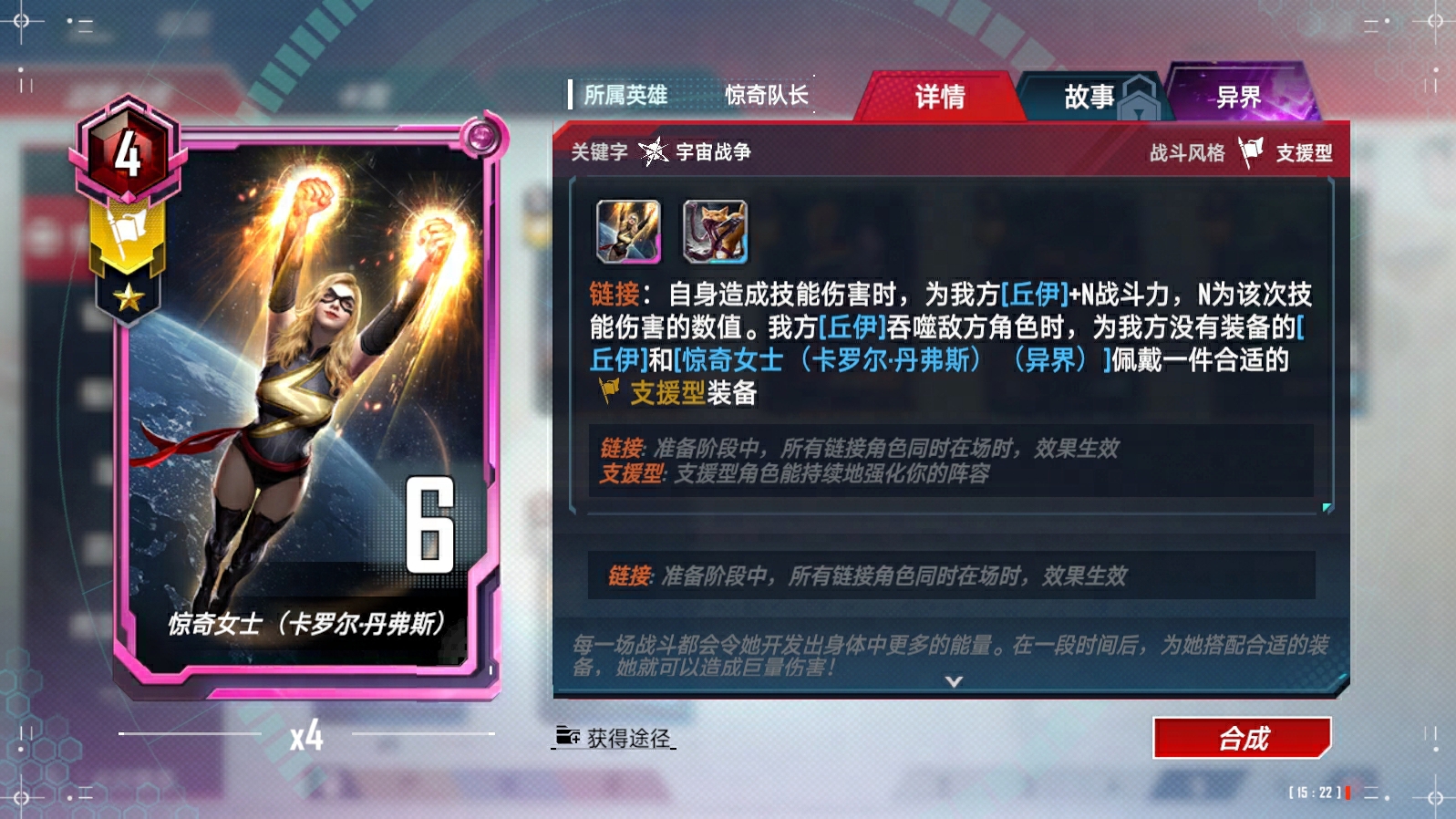 奥创(异界)、浪、苏尔特尔链接(与奥丁)、蜘蛛侠(迈尔斯·莫拉莱斯)链接(与尼克·弗瑞)、瑟西链接(与提亚姆特和马卡里)、马卡里链接(与提亚姆特和瑟西)、绝境装甲(异界)、凯伦·佩吉、X战警的集结、X战警的集结-终幕、洛基(仙宫陨落)、瓦尔基里链接(与阿斯加德天马)、克里亚链接(与奇异博士和奥马尔)、深红宝石、超智机构生化怪物、超智机构士兵链接(与魔多客和超智机构生化怪物)、泽莫男爵(秘密帝国)(异界)、蜘蛛侠链接(与黑猫等)、叶莲娜(漫威影业 黑寡妇)链接(与黑寡妇(漫威影业 黑寡妇))