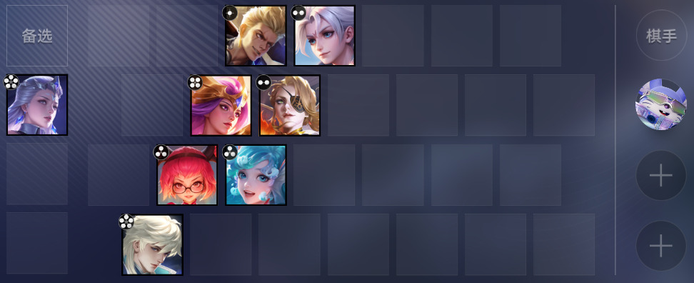前期(1~3回合)和大多数阵容一样,商店买1张奕星,闹闹技能获得1张狂铁,剩下能量用于升级棋手等级。