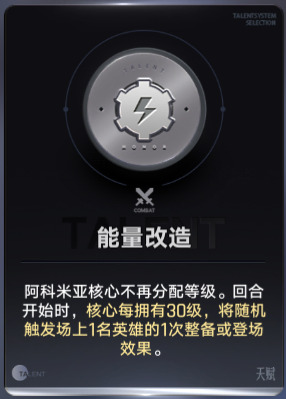能量改造属于日落海的天胡天赋,核心不再分配等级,每30级随机触发1次整备或登场效果,但是最好是中期再来,前期来的话,没有核心提供的临时等级,很容易扛不住对手被秒。