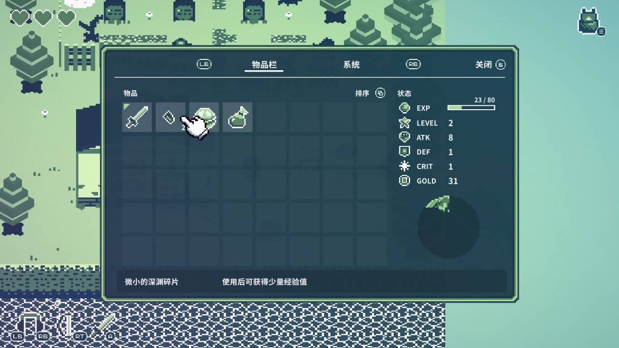 不过,本作的战斗系统实际上并不复杂,完全可以追溯到远-近-走位的基本系统中。同时,游戏也为玩家准备了一定的收集和养成要素,进行全局的勾连。通过击败怪物,玩家可以收集道具和经验值提升自己的基本属性从而推动角色的发展。右下角的“月亮轮盘”则标定了本作的核心故事和主题。