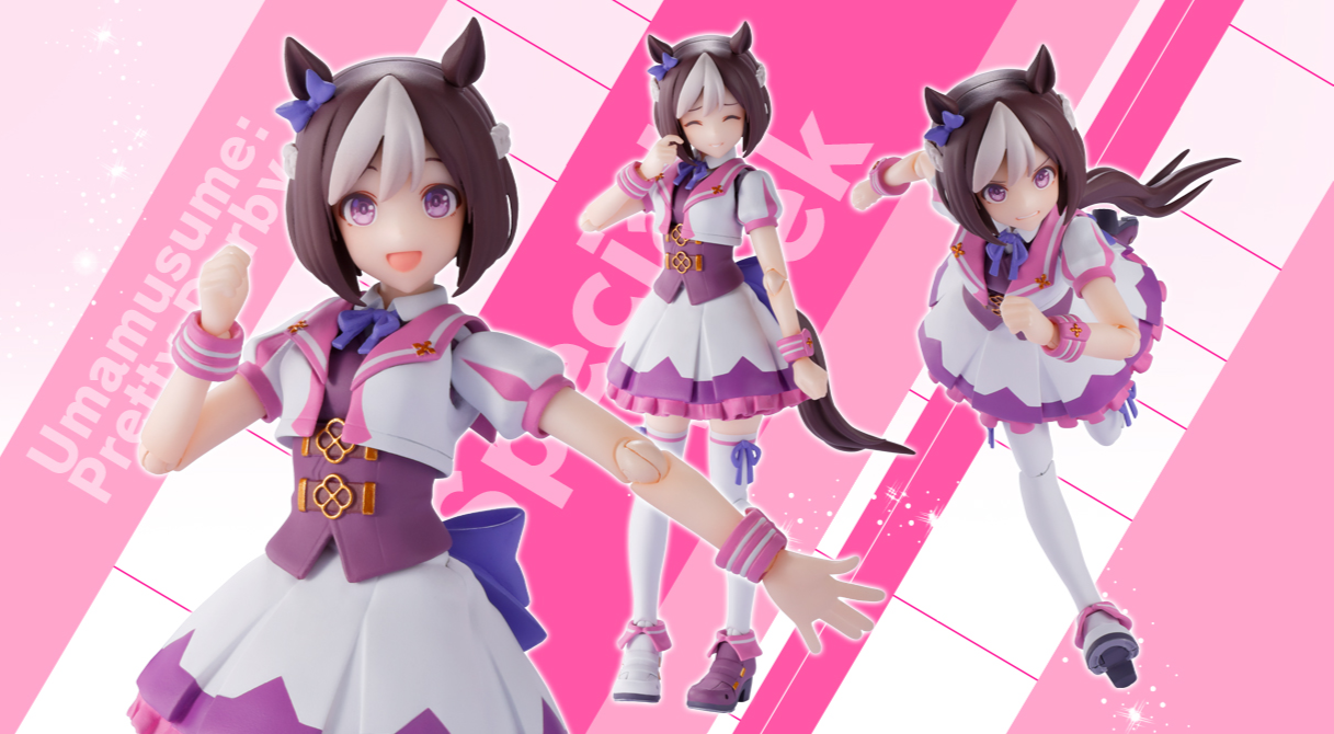 ゲーム『ウマ娘 プリティーダービー』から「サイレンススズカ」がS.H.Figuartsに登場!S.H.Figuartsシリーズの可動に加え、豊富な表情パーツ・手首パーツが付属し、レースシーンやライブシーンの再現が可能!長髪部分には軟質素材を使用し柔軟な可動を実現!