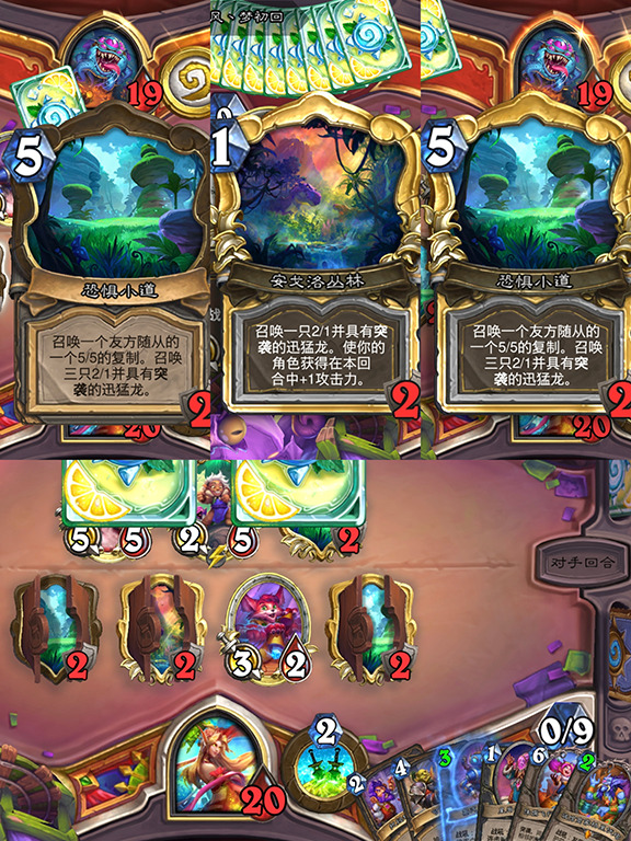 我使用【暗影步】回手自己的【导航员伊莉丝】和【似曾相识】发现对手的地标(【似曾相识】四费,在手里不用着急打,等对手【导航员伊莉丝】 发现了5费地标,再偷就可以不用下4/3/5的白板,还比对手快一回合打出,有老哥可能会问为什么假定对手会在4费下【导航员伊莉丝】 ,如果对手有,那一定会下,然后4接5的这样一个节奏。如果没有,那盗贼下回合偷也不迟)。形成了三地标的组合【复制】,【召唤一个5/5友方复制】+【所有友方角色+1攻击力 】+【召唤一个5/5友方复制】的组合(选召唤2/1突袭防止没有场面)。这样,我手里就有了10多点斩杀。就差一张冲锋。