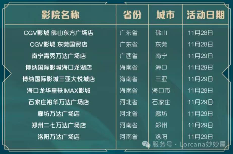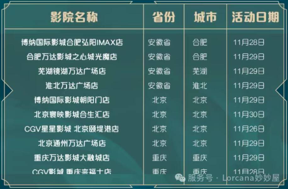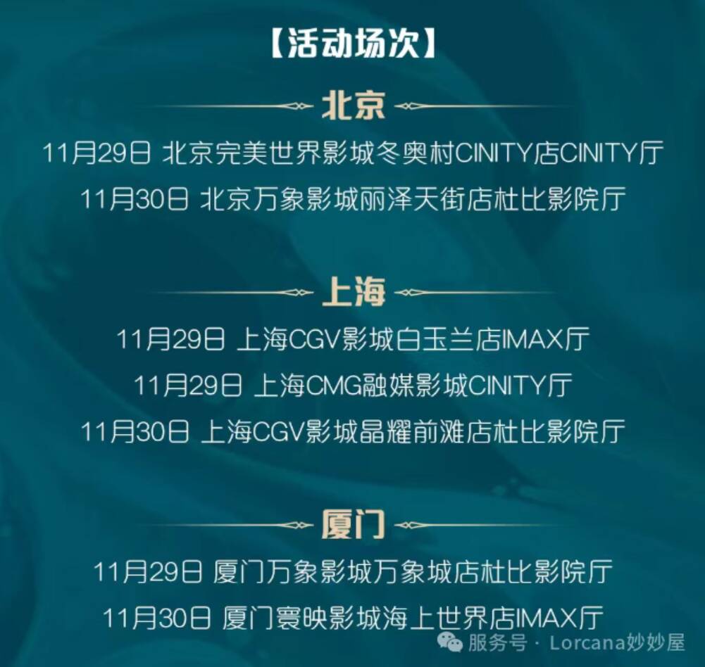 除此之外,官方还推出了两个相关活动,一个是迪幻Deefun粉丝观影活动,参与可以获得P卡和补充包,场次如下: