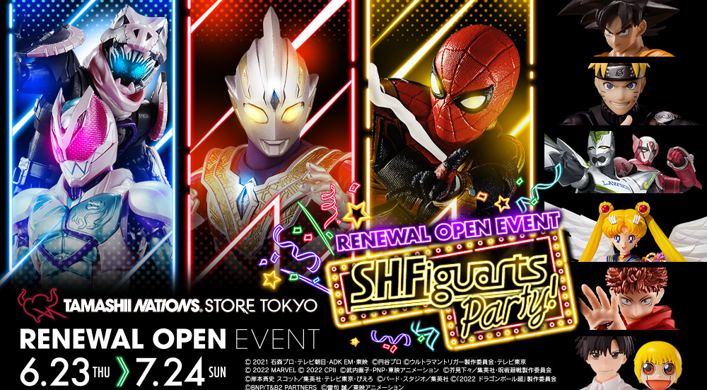 S.H.Figuartsのひな形となる無可動スタチューをStudio-蓮の中澤博之氏、加藤蓮氏、WATANABOX 渡辺雄介氏が制作。無可動スタチューを元に「Dynamic Movable Shoulder System」など最新可動構造を採用し可動フィギュア化!S.H.Figuartsならではの交換用パーツによりイラスト以外の表情、ポーズを楽しめる!