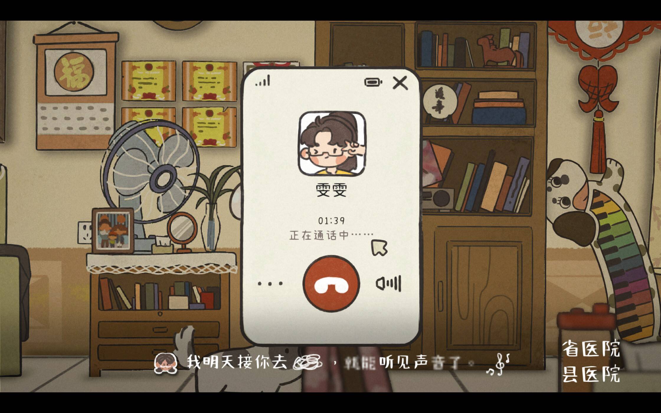 将音量调至最大后,我们勉强能听明白雯雯再说什么了。可是,新的问题又出现了。雯雯说的到底是哪家医院?我想,这里的设计目的大概是让玩家们同时感受到年迈以后记忆力的衰退。我们面对模糊文字以及突发选项的无力感,其实正是现实生活中那些听障群体以及生活不便的老人们所面临的困境的缩影。