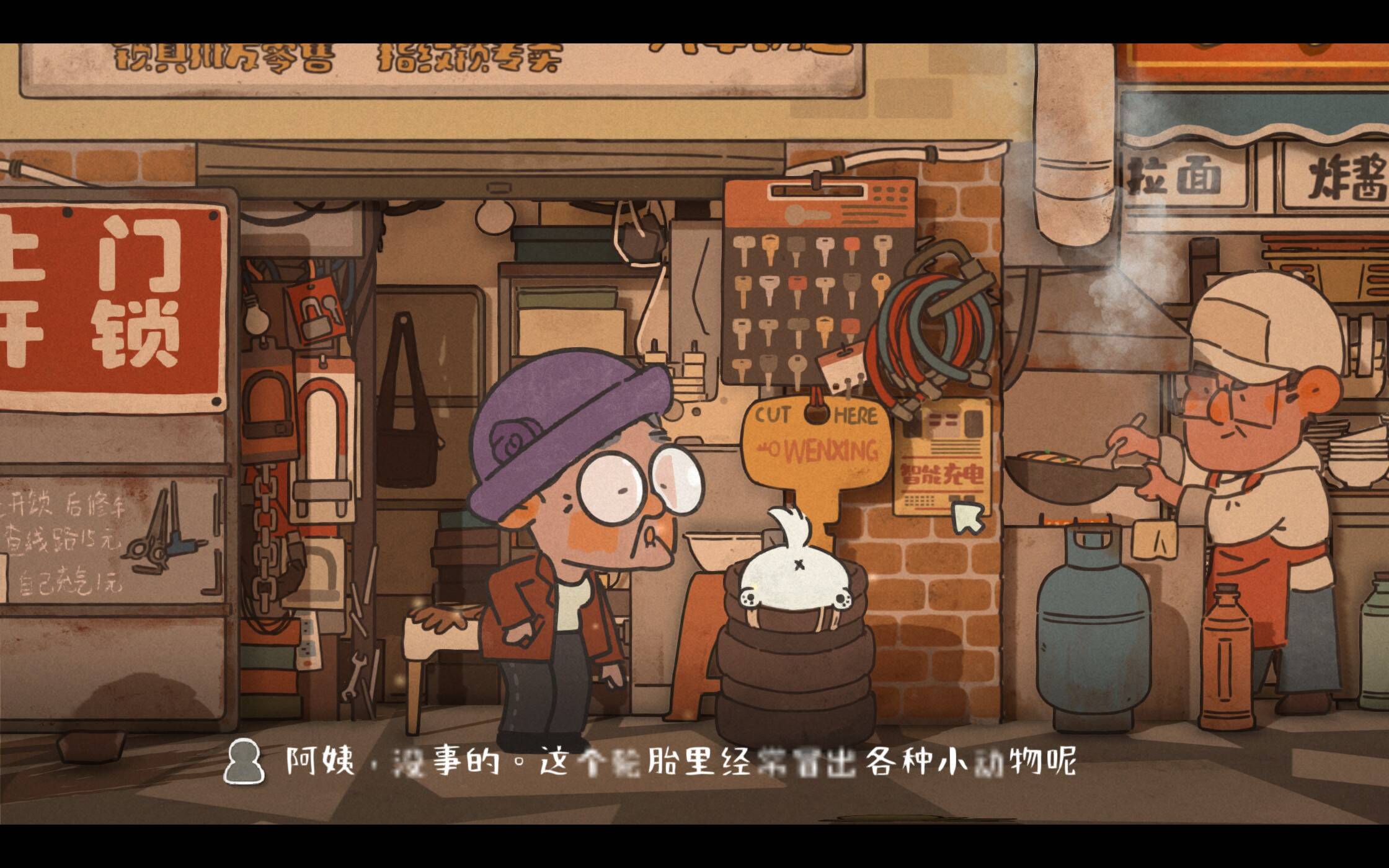 王桂花奶奶上了年纪,走得很慢,但慢悠悠也让我们把风景看得更清晰。街上奔波的外卖员、红薯摊附近噼里啪啦的烧火声、维修点墙上用粉笔写的广告等等……我们跟着奶奶与小白,走过县城的大街小巷,看到了许多温馨有趣的场景。老年人体力下降,总是容易累,所以制作者们专门将每个场景里出现的椅子都做成了靠近可坐的。大家一定记得让奶奶休息会啊!(就是坐上去会打盹来着)