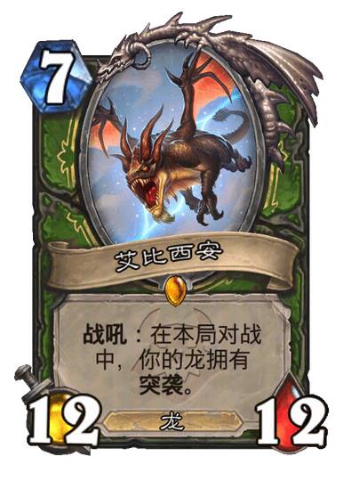 当本牌在你手中时,使用一张龙牌即可将本牌变为12/12的龙!