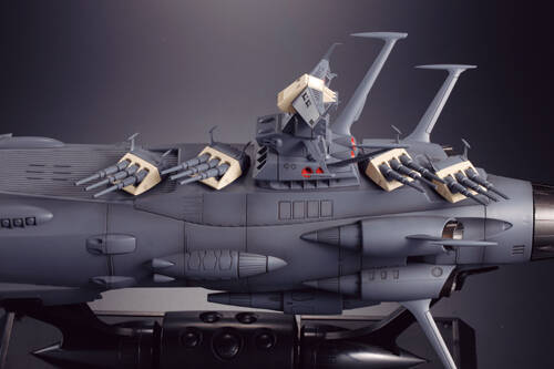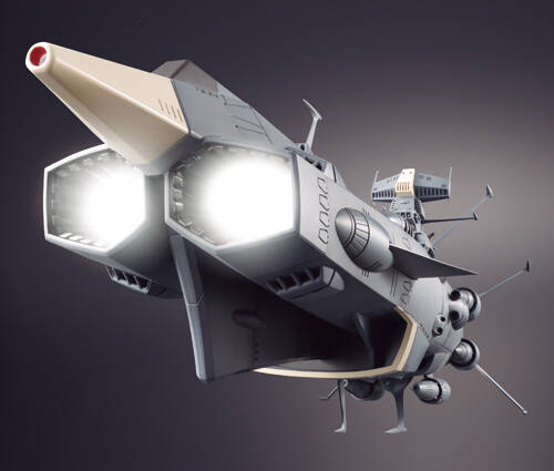 ファンに人気の高い地球防衛軍旗艦アンドロメダを、フルカラーLEDを使用した拡散波動砲・エンジンノズルの迫力の光ギミックと、心を熱くする楽曲・効果音を内蔵し商品化。あの劇中の感動のシーンを再現できます。