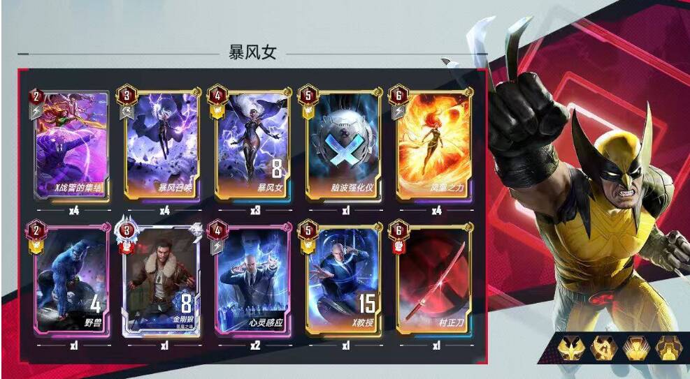 3费:核心暴风召唤*4,金刚狼纯因为钻皮带着好看,也为了加大红卡变狼的概率